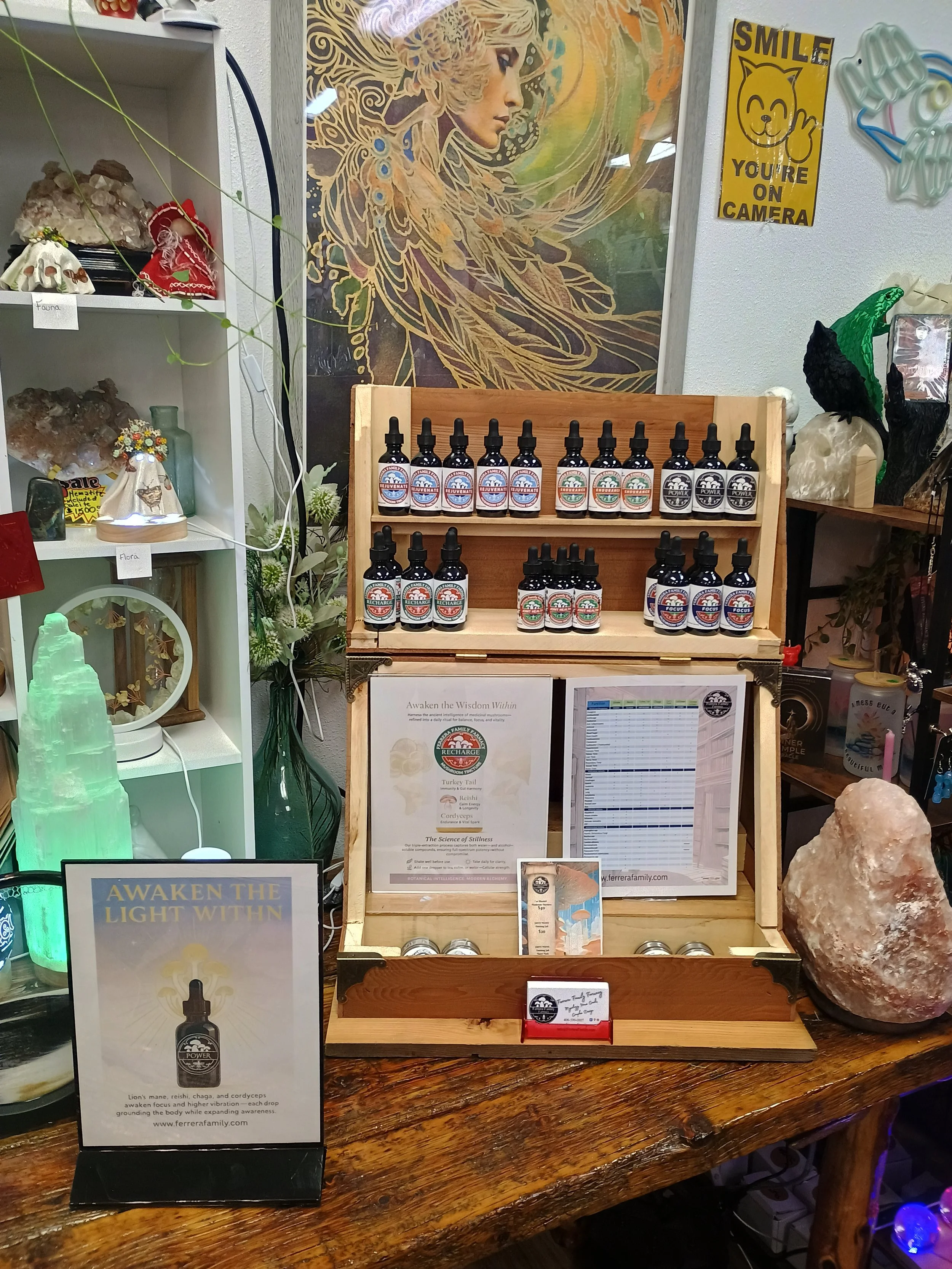 miniature theatrical steam trunk display $500.00 Original Salty Mane 2tsp $5.00 Power 2oz tincture $60.00 Recharge 2oz tincture $40.00 Bold Salty Mane 3oz finishing salt. $20.00 Rejuvinate 2 oz dual extracted tincture $40.00 Endurance 2 oz dual extracted tincture $40.00 1 oz K9 Turkey Tail duel extracted tincture $20.00 Sold out Focus dual extracted tincture 2oz $40.00 12x12 Beeswax wrap $7.00 Sold out Salty Mane Finishing Salt 3oz $20.00